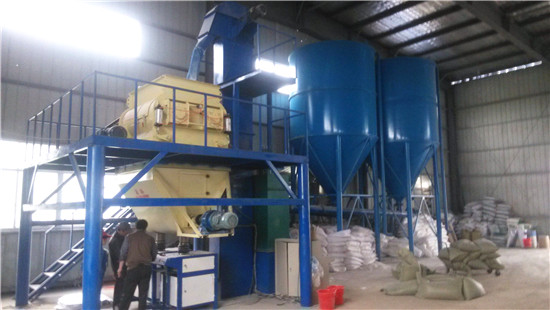 砂漿生產工作原理:各種原料從一個料斗上料,先投入水泥跟纖維等添加劑攪拌3分鐘,然后加入石英砂攪拌5分鐘即可將產品提升至儲料倉進行計量包裝。